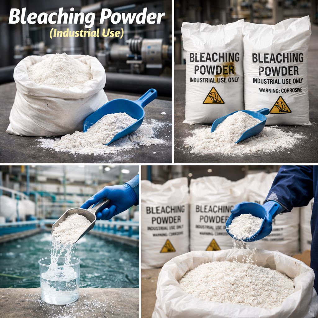 Industrial bleaching powder for water treatment and sanitation.